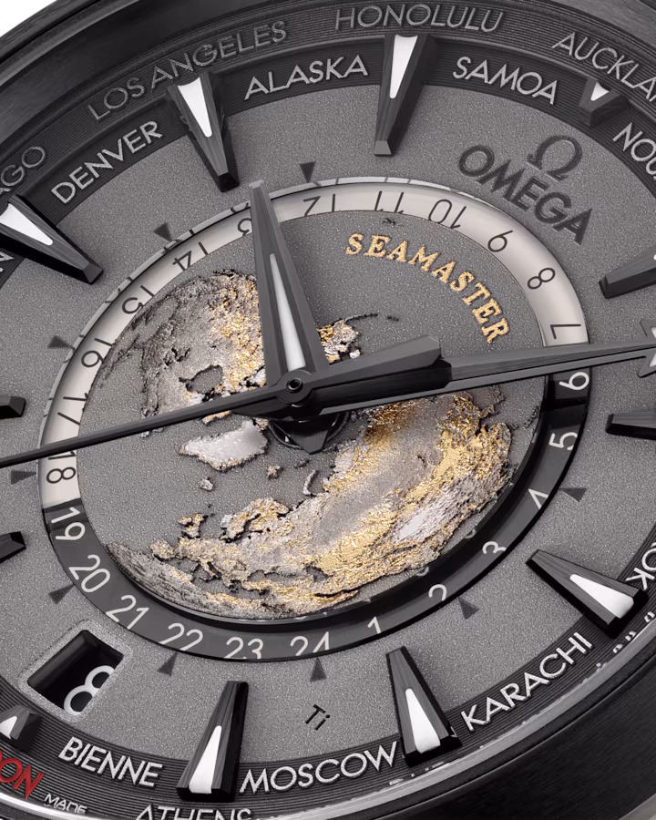 • לוח עולם (Worldtimer) ייחודי עם חריטת כדור הארץ מלמעלה